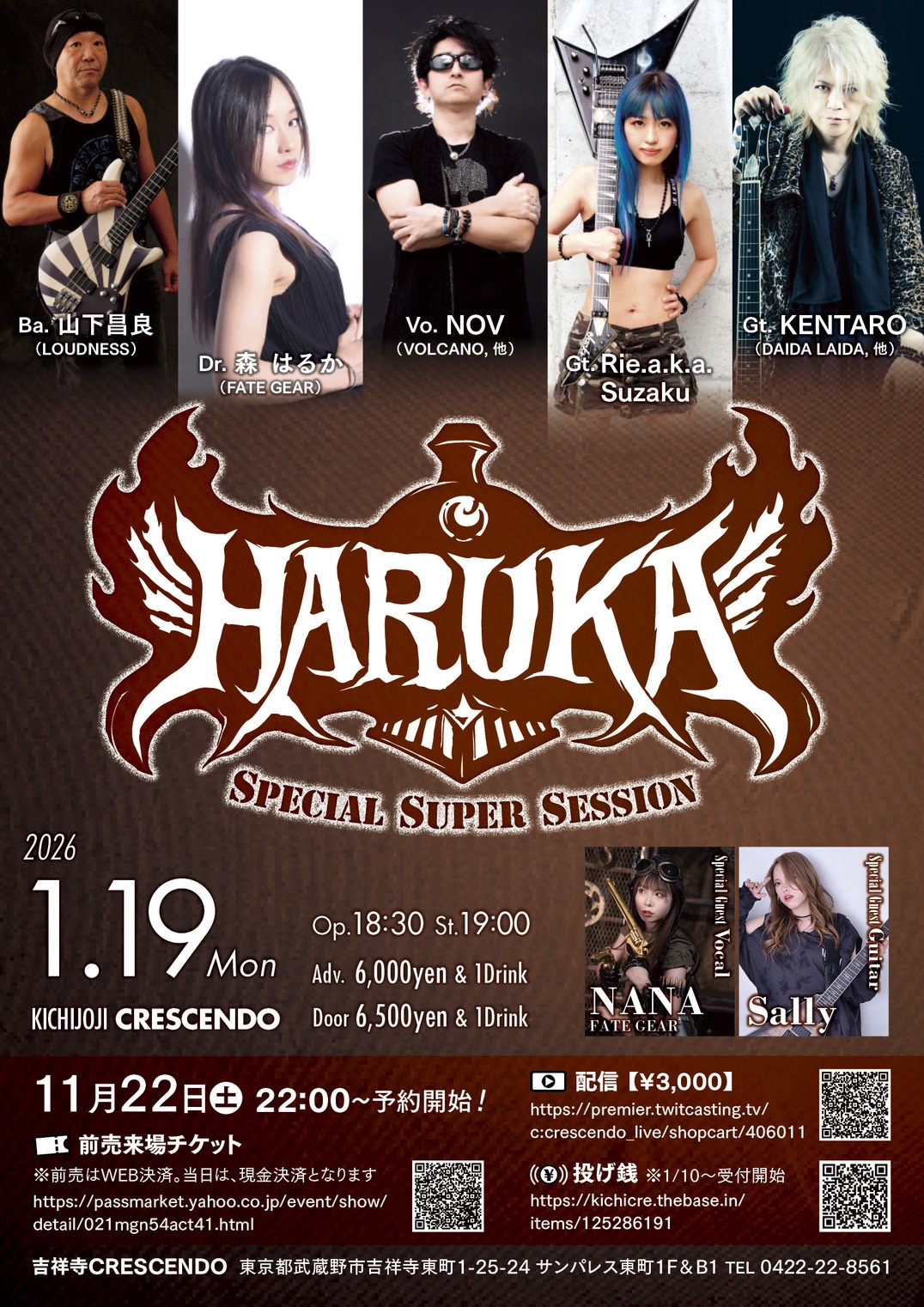メンバー: Vo. NOV (VOLCANO, 他) Gt. Rie.a.k.a Suzaku Gt. KENTARO (DAIDA LAIDA,他) Ba. 山下昌良 (LOUDNESS) Dr. 森はるか(FATE GEAR) Guest Gt.Sally Vo.NANA
